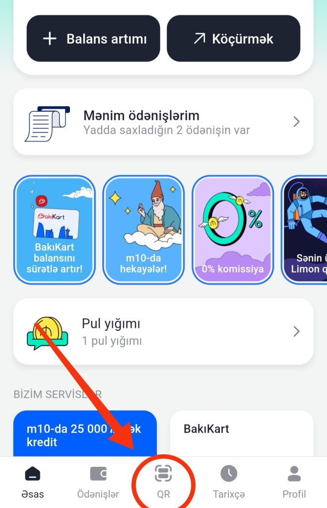 - M10 Tətbiqini açın, barkodu oxudun və lazımlı ödəniş miqdarını qeyd edin. Bunun sayta qeyd edilməsi bir qədər zaman ala bilər.